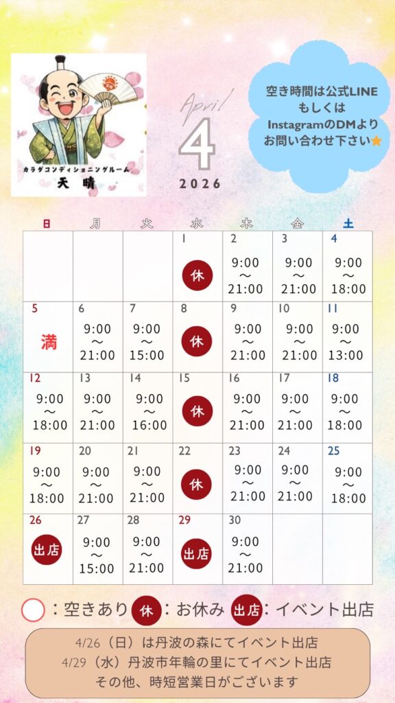 皆様初めまして。カラダコンディショニングルーム天晴の